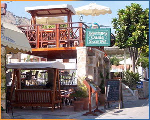 Name: Oasis Pool Bar Oasis has a pool with free sunbeds. It serves breakfasts, lunches and snacks and is open all day. They also have a great selection of mouth-watering desserts and ice creams. There are several TVs for watching sports and some nights they have pub quizzes. The staff are all very friendly and it’s a great relaxing place to visit any time. They even have a couple swing chairs to relax on. |